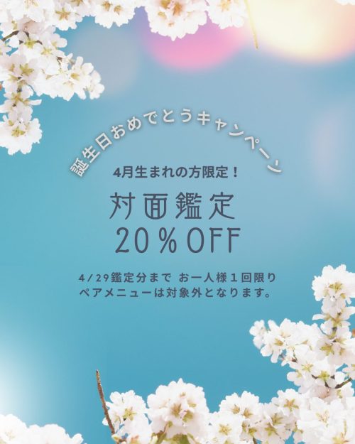 4月生まれの方限定!対面鑑定20%OFFキャンペーン